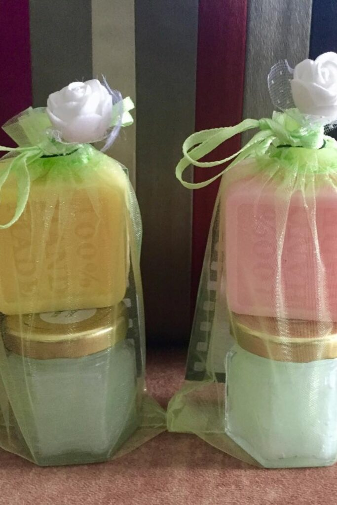 This is another version of the spa jar that is easy to assemble. It is a homemade gift that feels caring.
