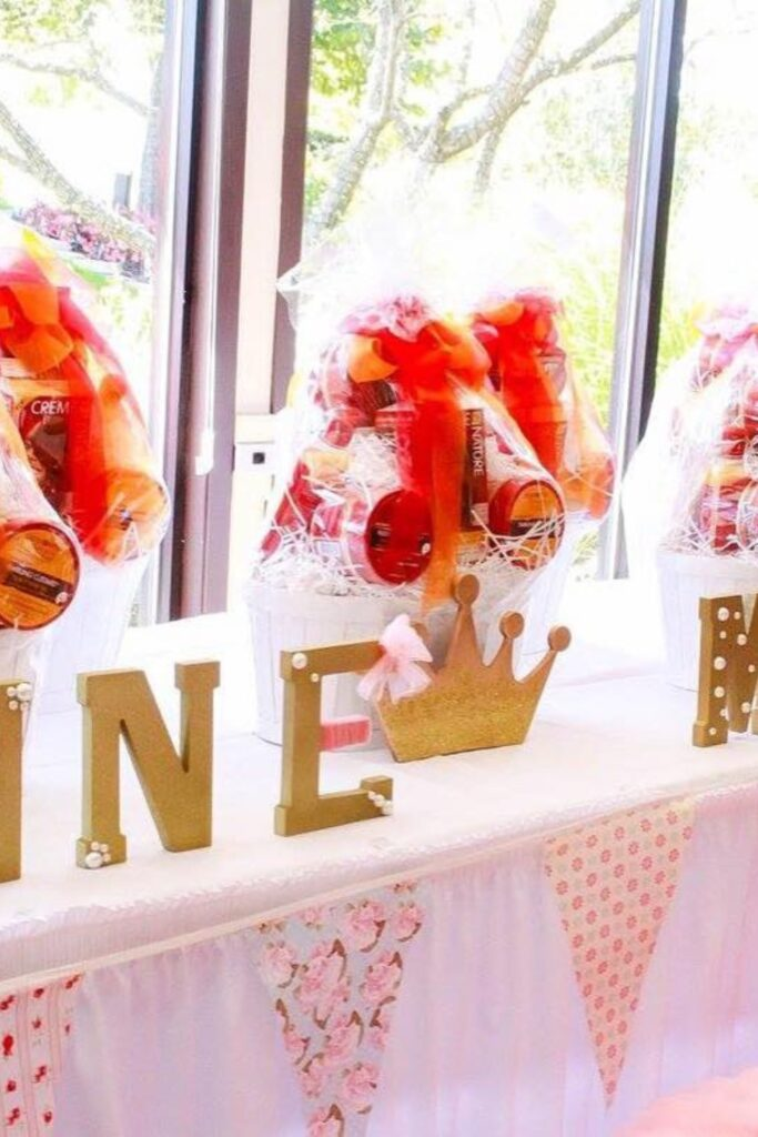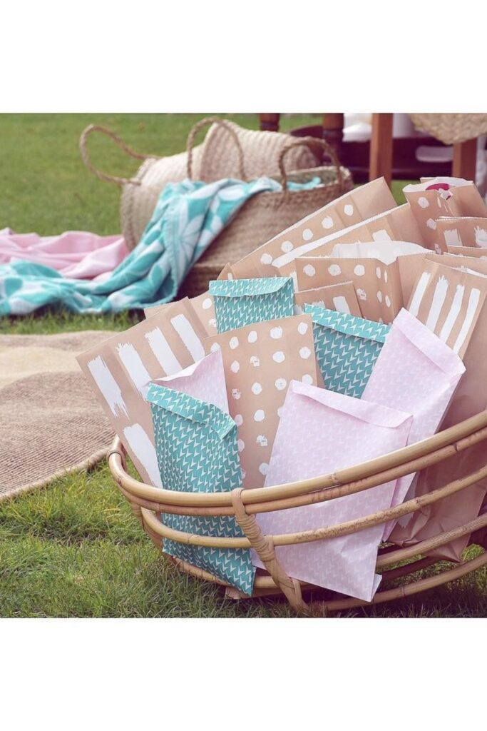 This adds a fun surprise element. Use pretty paper bags that match your party theme.