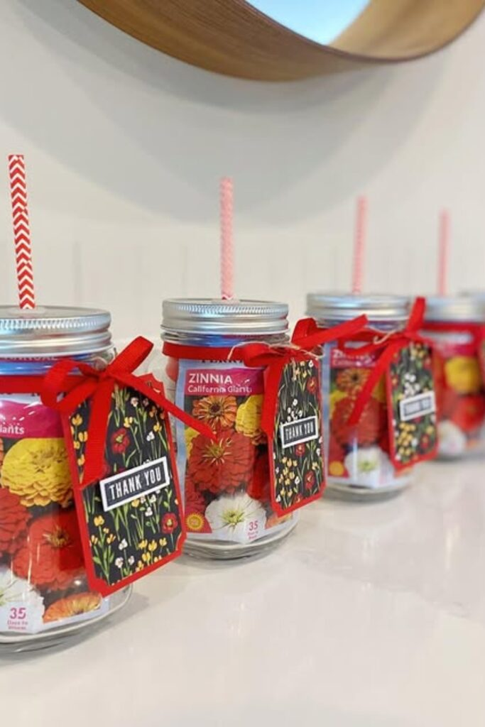 Put a packet of flower seeds into a small mason jar. Add a thank you tag.