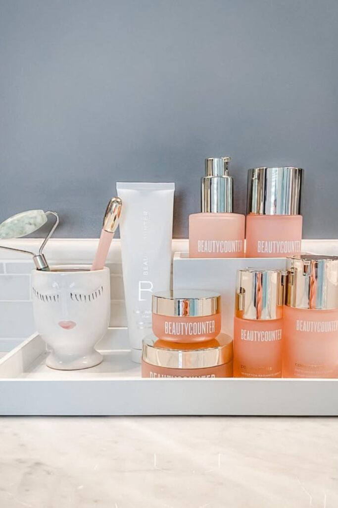 Streamline your counter with clear acrylic drawers. These stackable units separate skincare, nail polishes, and creams into clear sections. This lets you find items fast. They are small and sleek, adding a modern touch while keeping everything organized and close by.