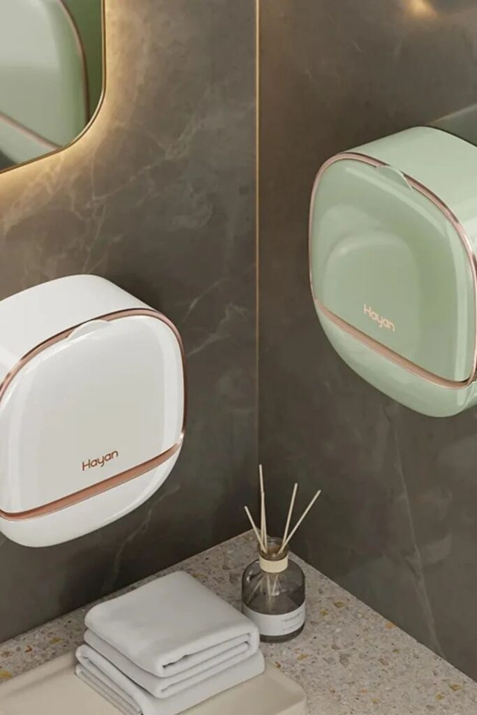 Save space with a wall-mounted tissue dispenser. Its modern, small design keeps tissues easy to reach while making your bathroom look nicer. With soft colors and gold accents, it looks good with both modern and classic decor. It is a clutter-free, clean solution that works as well as it looks.