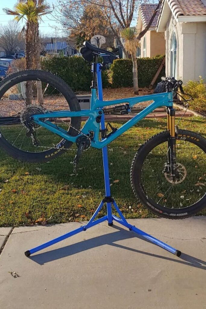It folds up when you are done, which is perfect for cleaning or fixing your bike.