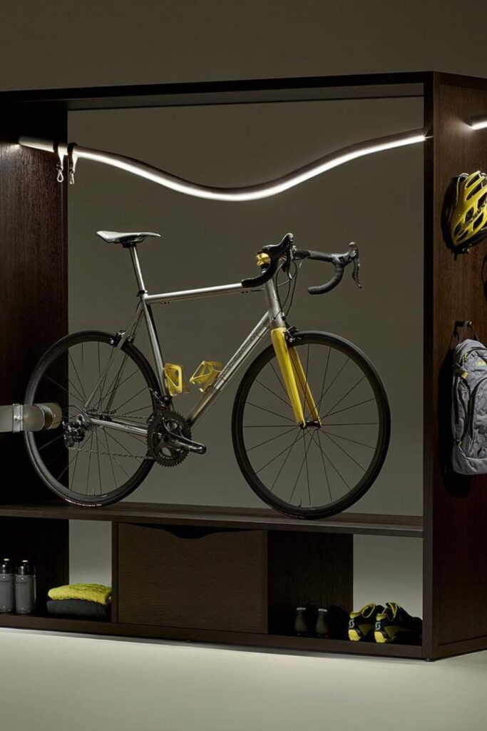 It is a beautiful way to store your bike and your gear in a dedicated space.