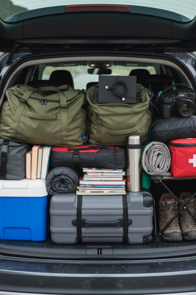 Random stacking during trips causes chaos. Place heavy items at the bottom and soft or daily-use items on top.