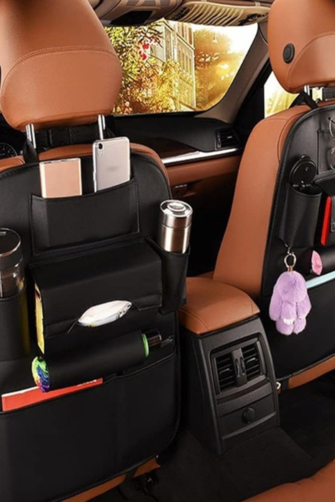 Backseats can become cluttered with small items. A seat-back organizer transforms dead space into storage.