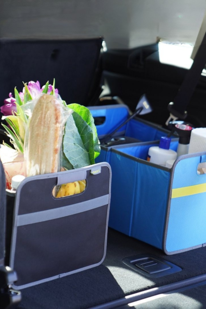 Place tall organizers near the trunk opening for fast unloading. Bread, produce, and bottles stay safe and intact.