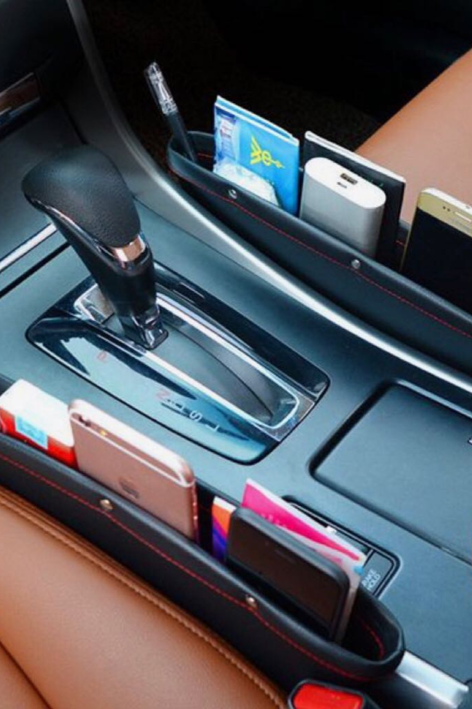 Use soft organizers that slide between seats and the console so nothing shifts while driving.