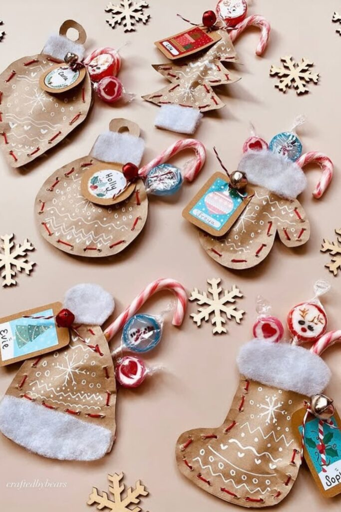Cut kraft paper into holiday shapes like stockings or mittens.