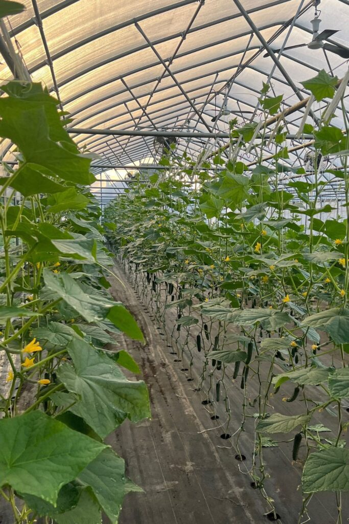 This setup allows good airflow and sunlight, helping plants stay healthy and strong. It also supports heavy growth during peak season.