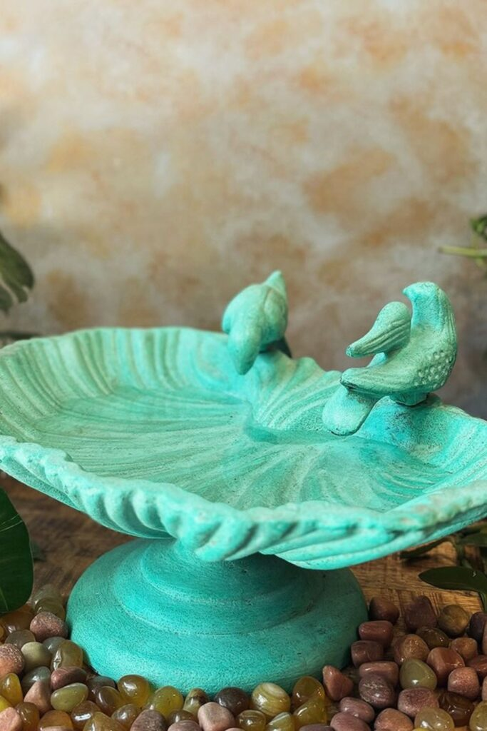 Look for a leaf bowl that already has small bird figures on the rim. This adds personality. This easy project brings a pop of color and a natural form to your yard.