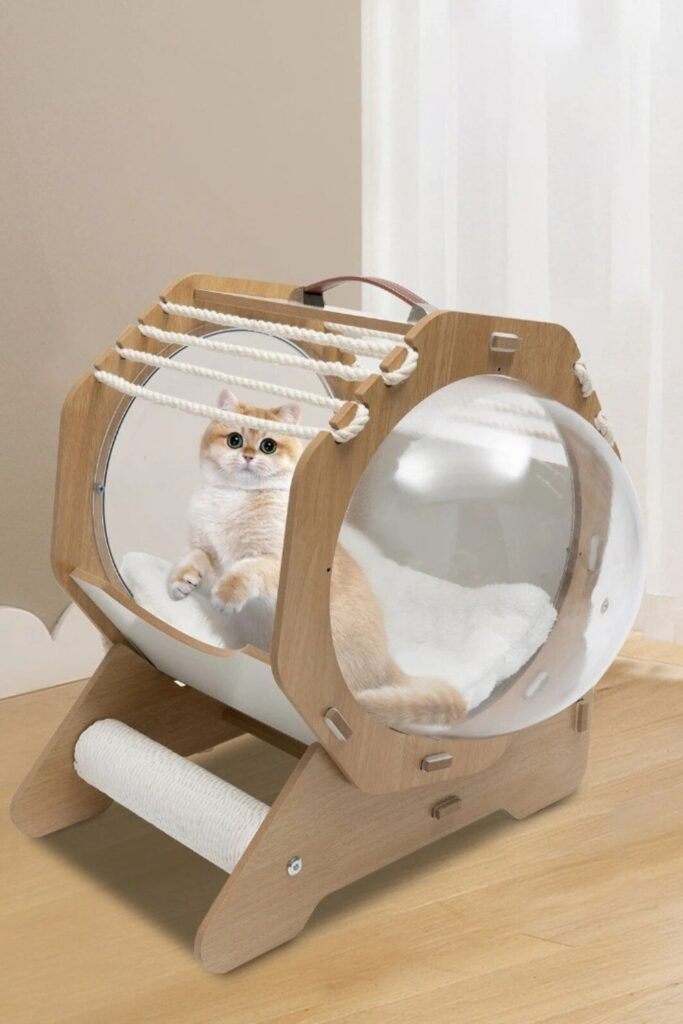 Cats are curious. A clear bubble bed lets them see everything while feeling partly enclosed. The raised frame supports them and the curved shell is cozy.