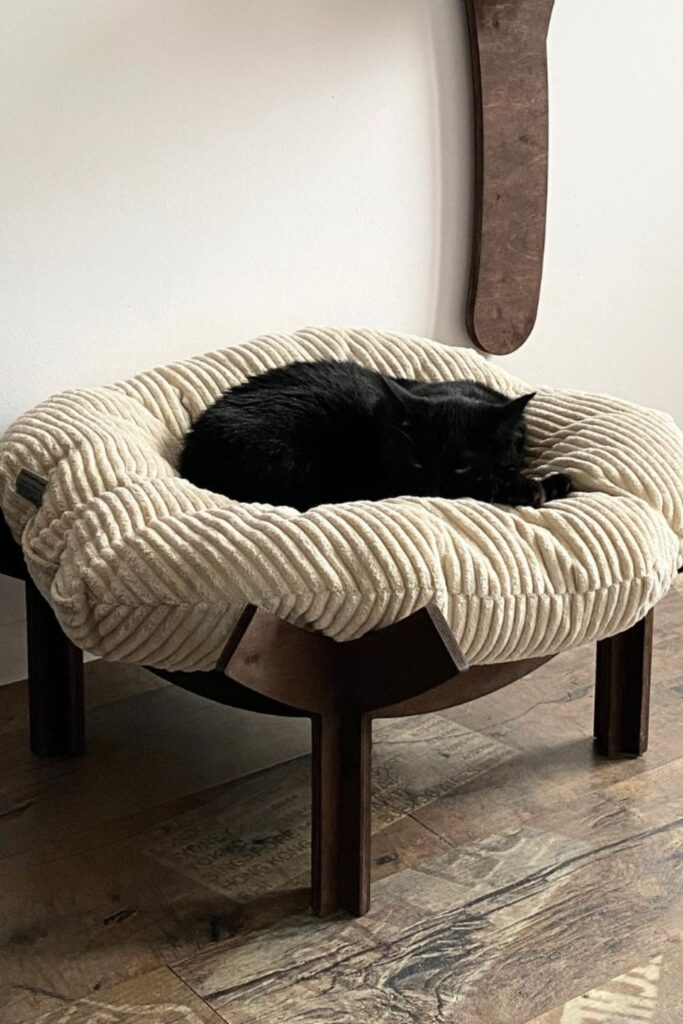 A tiny bed made just for your cat makes sleep feel special. The raised frame keeps out drafts. A soft mattress clearly says this spot is for resting.