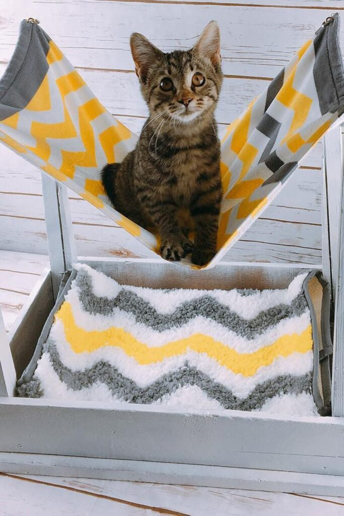 It is perfect for rooms where your cat wants a prime watching spot. Stretch a strong fabric, like canvas, across a simple wooden frame to make it.