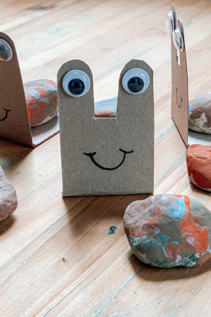 Use the cardboard to shape the snail’s body and glue on googly eyes.