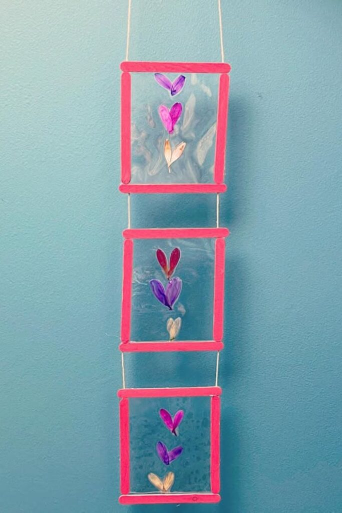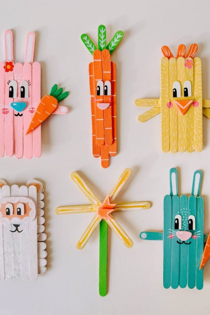 Paint the sticks in soft, bright colors like pastel pink and blue.