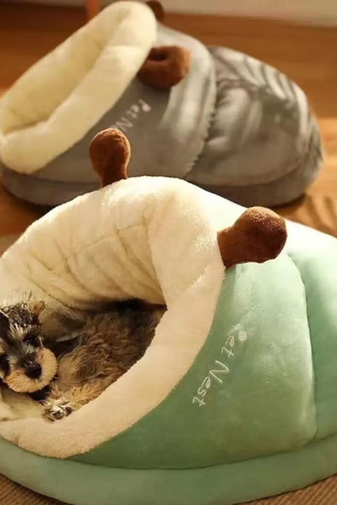 Some dogs love to burrow when they sleep. A cave-style bed is perfect for small dogs that like to hide and stay warm.