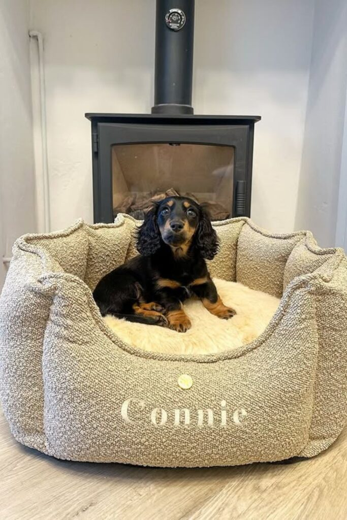 Many dogs look for warmth when the floor is cold. A deep-sided bed placed near a heater fixes that problem.