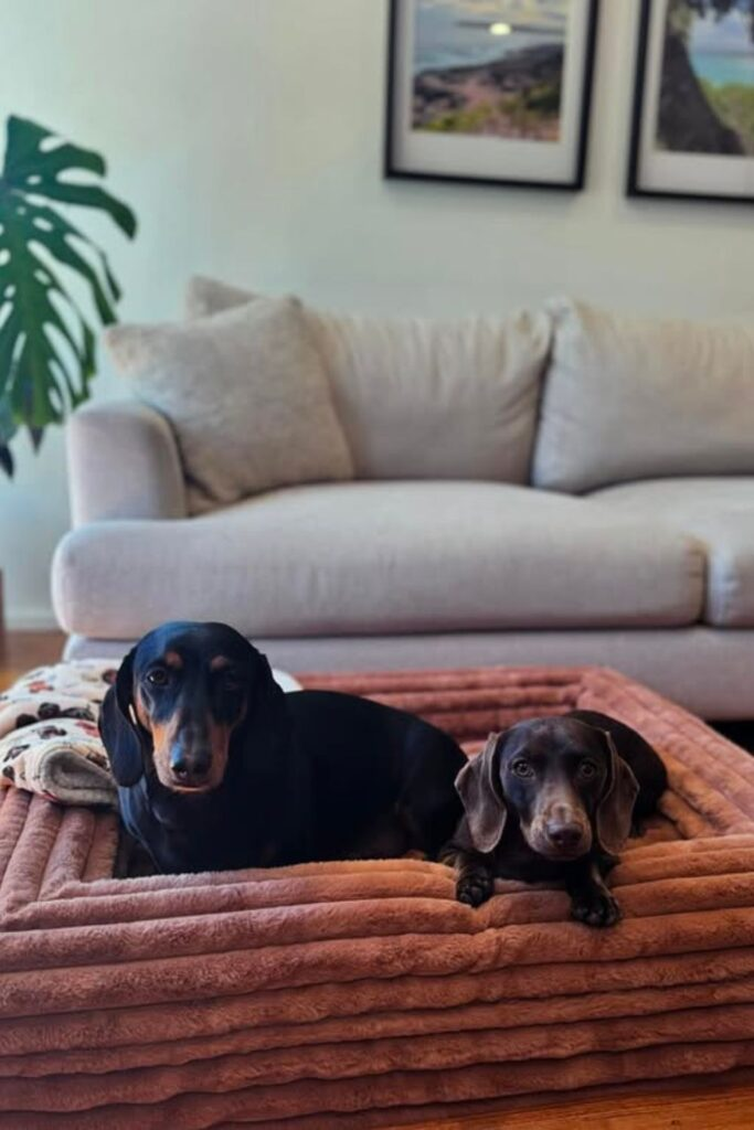 Dogs that sleep close together or near people need a wide, low bed. This is perfect for busy living areas.