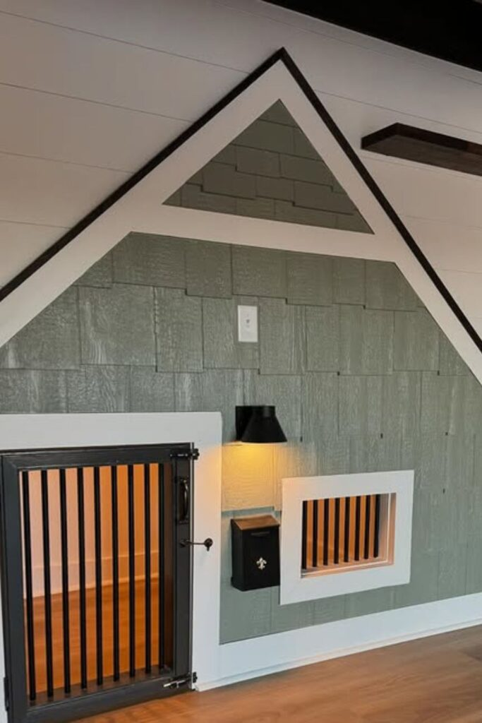 This uses the empty space under a staircase. You frame the opening into the wall to create a permanent, quiet retreat. Add a gate, durable flooring, and comfortable bedding.
