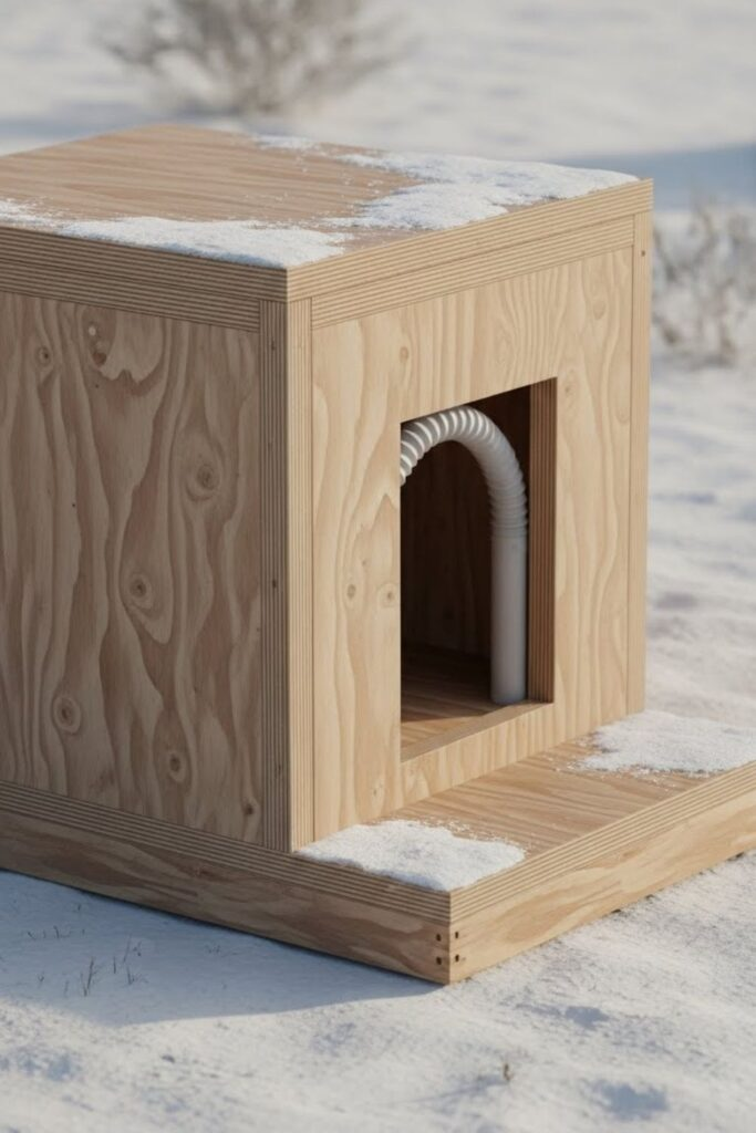 Cold weather calls for a simple, compact box. This shape holds heat better than designs with lots of corners. Put foam board insulation between plywood walls.