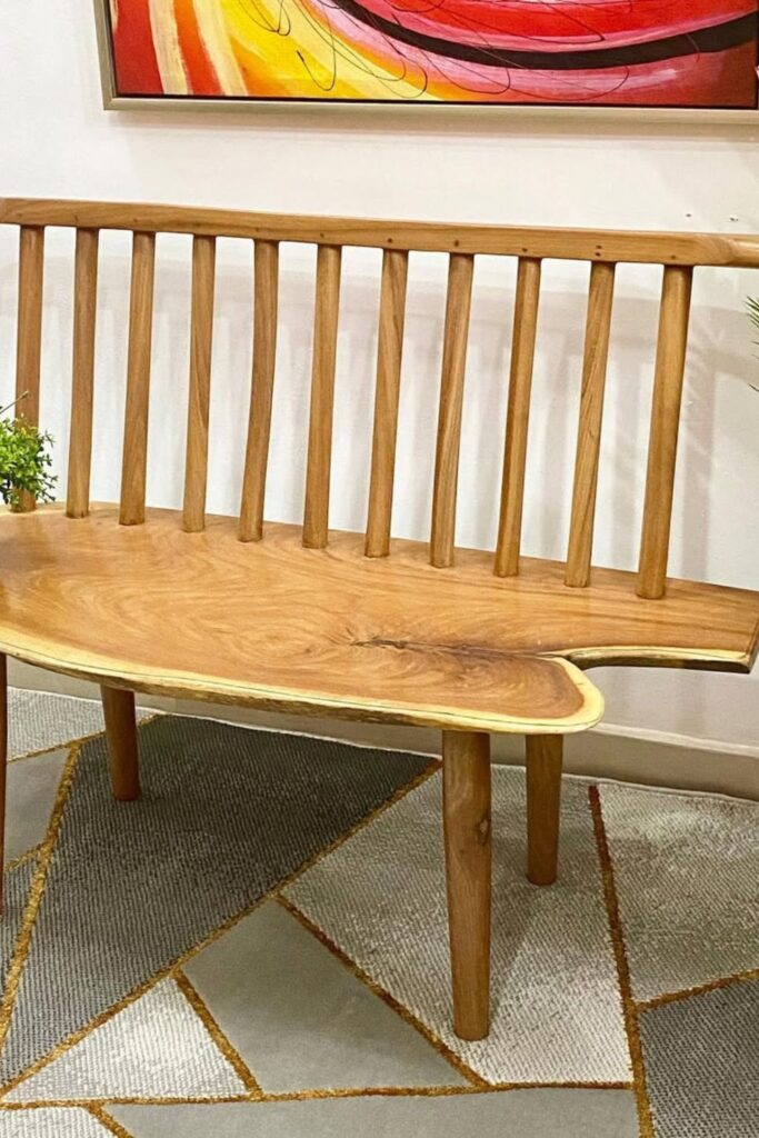 Make a unique bench from a piece of live-edge wood. Give it a sculptural, asymmetrical seat and an elegant spindle back.