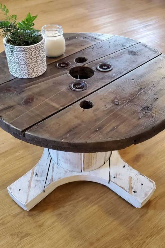 Turn an old wooden spool into a charming patio table. It will have a rustic farmhouse feel.