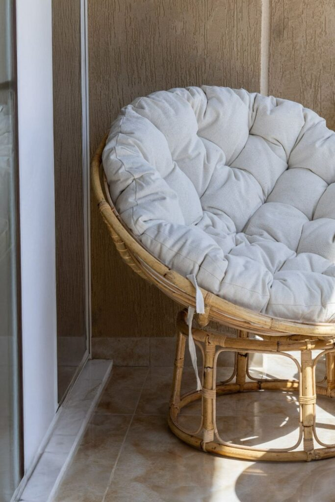Add a cozy touch to any corner with a round papasan chair. Use one with a tufted cushion for comfort.