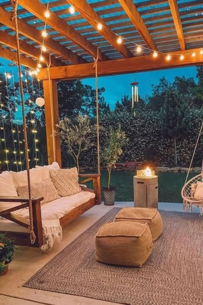 This combines rustic charm with relaxing luxury. It is perfect for gatherings or quiet nights under the stars.