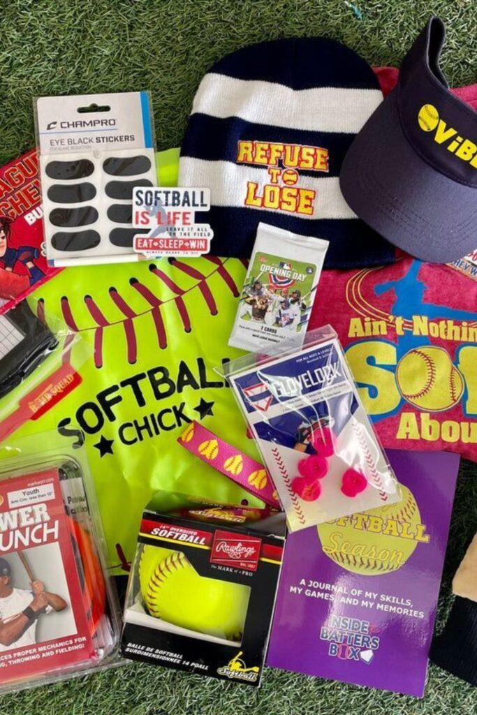 Make a gift bundle with fun softball items. Put in a cute softball t-shirt and some motivational stickers.