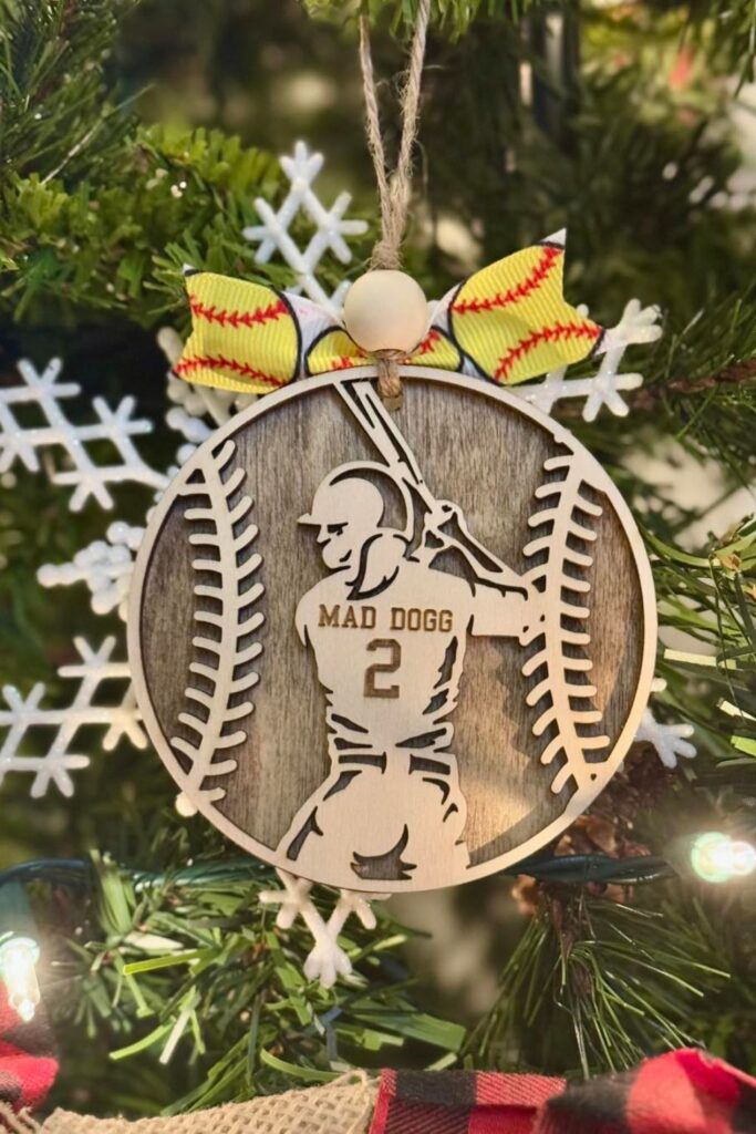 Make a sentimental ornament for their tree. Pick one shaped like a softball or a batter.