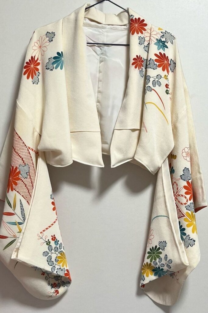 Repurpose vintage fabrics into a cropped kimono jacket with floral prints. A beautiful layering piece that blends traditional and modern aesthetics.