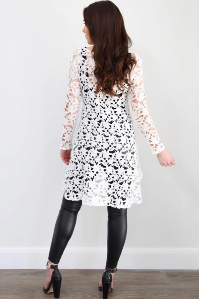 Layer white lace over a black dress for a chic, gothic-inspired outfit. A gorgeous upcycling idea using lace curtains or tablecloths.