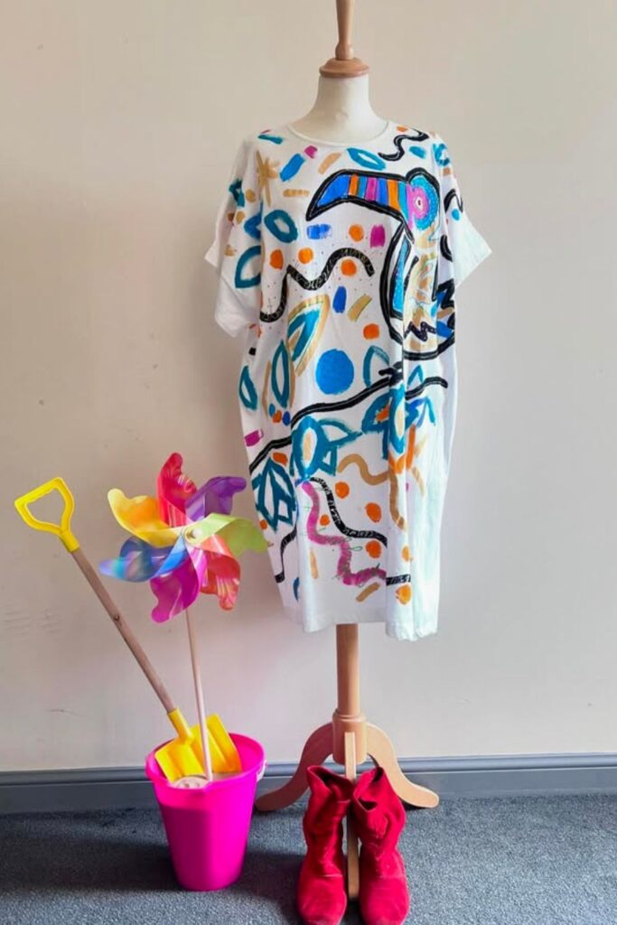 Paint a white oversized tee using fabric markers or paints. Add tropical birds, abstract art, or bold shapes for wearable artwork.
