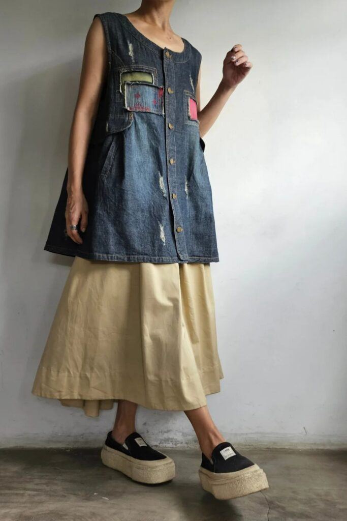 Upcycle denim jackets into an oversized vest with big pockets, frayed edges, and distressed details. Add hand-painted touches for extra character.