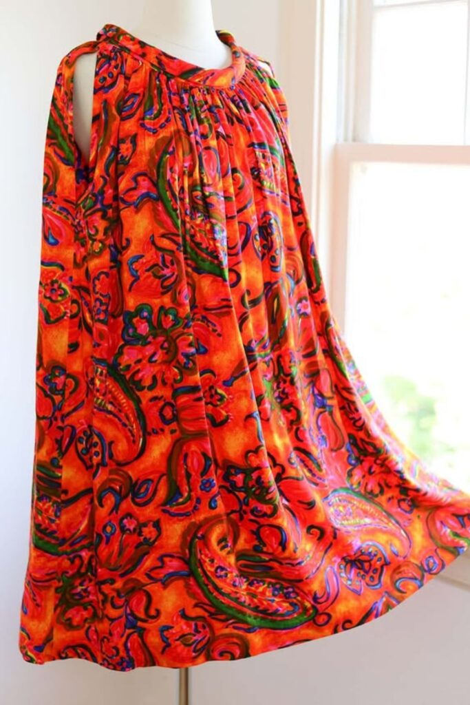 A bright, psychedelic tent dress with a gathered neckline. A no-zip, super-easy project—perfect for summer heat.