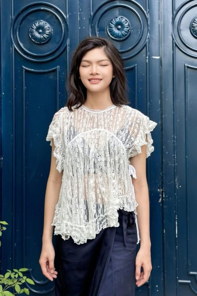 Turn lace fabric or curtains into a whimsical ruffled blouse. Perfect for fairycore, vintage, or romantic outfits.