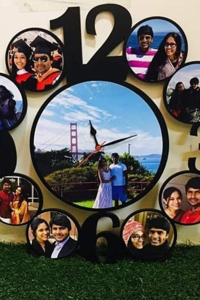 Create a functional gift that constantly reminds him of your relationship. Arrange photos of your best moments together around the clock face.
