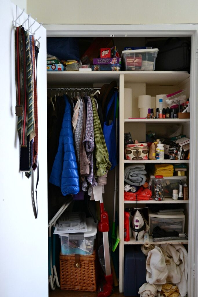 Cluttered Closet Before the Reset