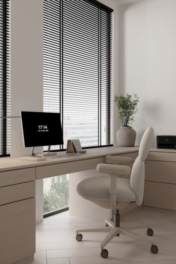 Modern Neutral Workspace with Built-In Storage