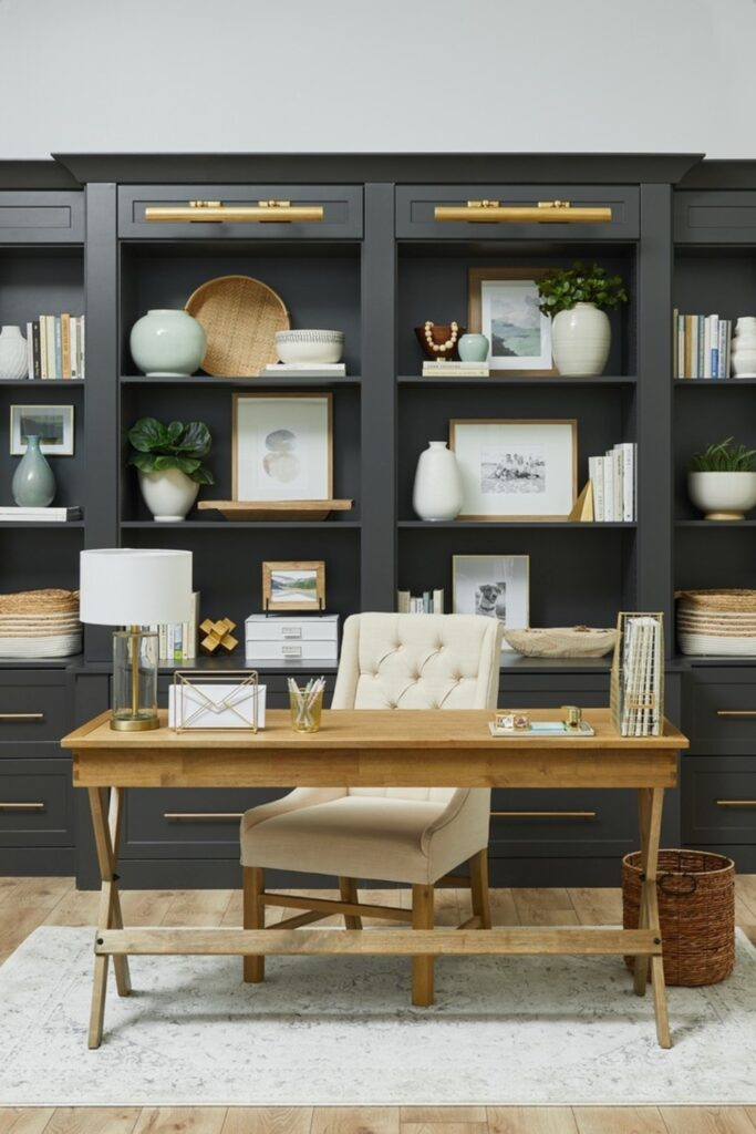 Statement Desk with Dark Built-In Shelving