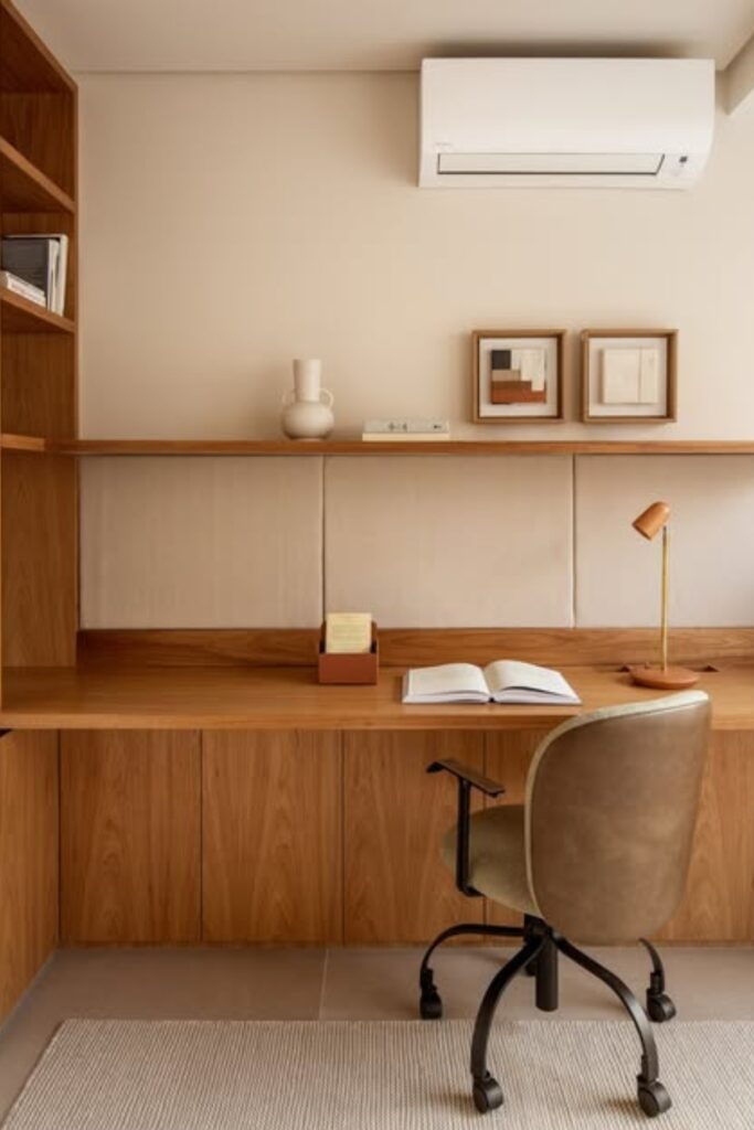 This design uses natural wood tones to create a calm and balanced feel.