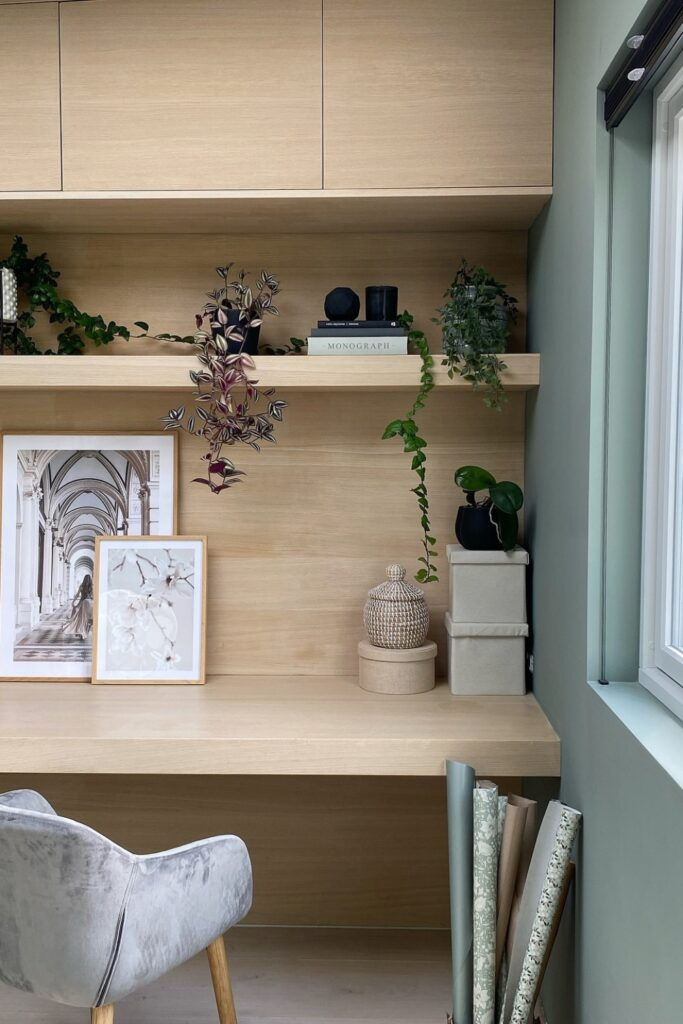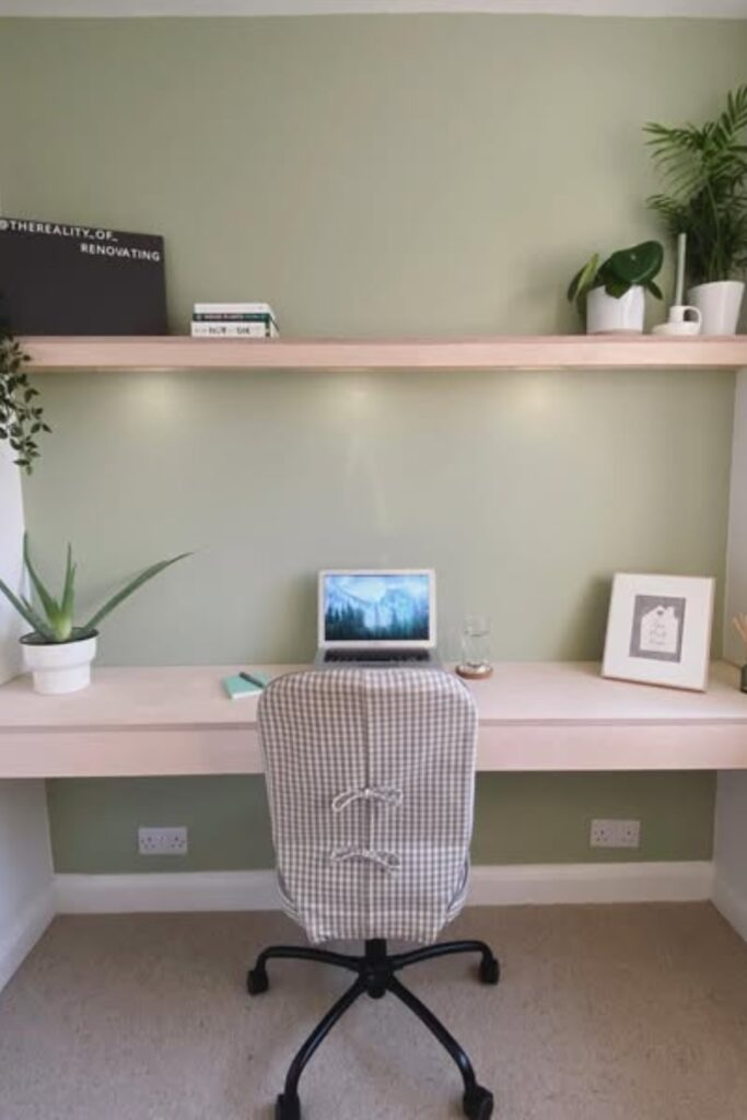 Floating Desk Nook with Soft Green Accent