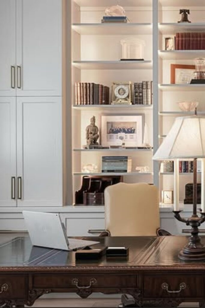 Classic Office with Built-In Display and Warm Lighting