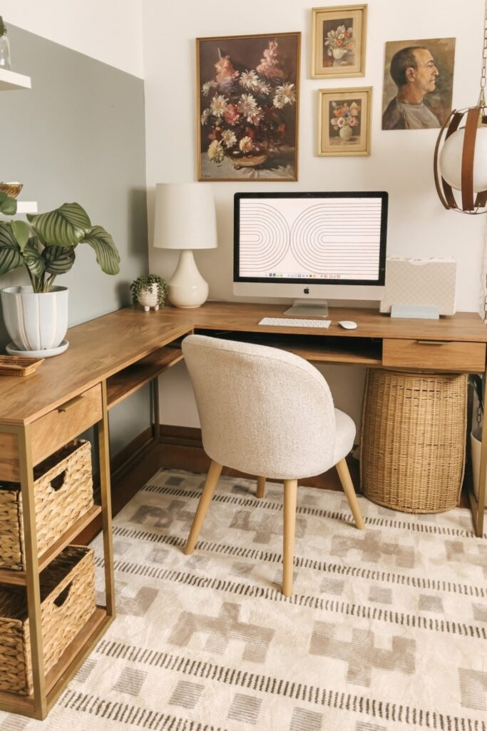 Cozy L-Shaped Desk with Warm Neutrals