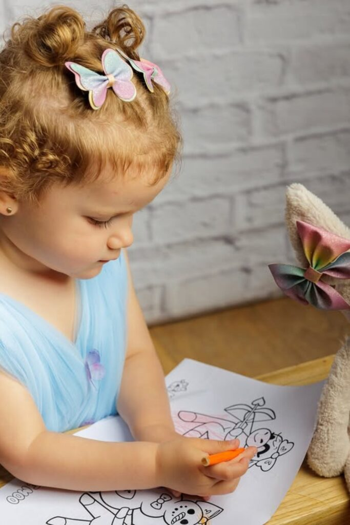 A simple coloring setup keeps kids calm and focused. Natural daylight creates a soft working space.