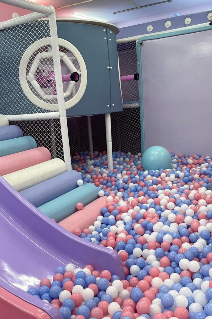 A soft ball pit creates a playful zone indoors. Gentle colors keep the space calm.