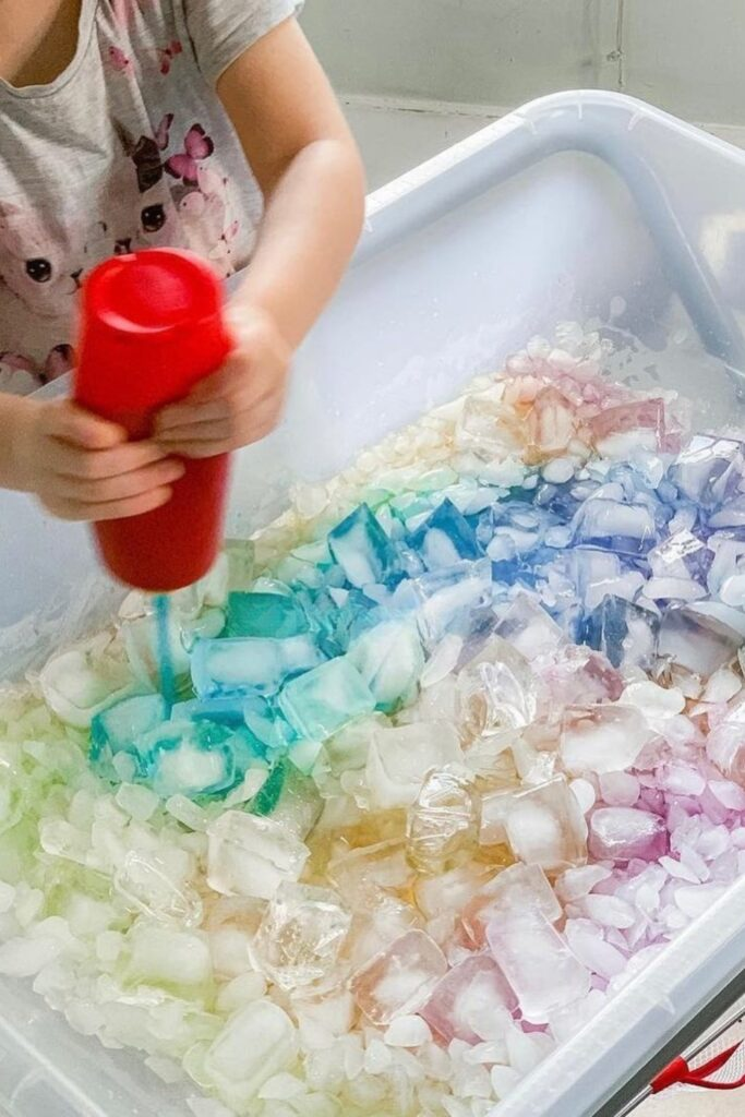 Ice bins let kids mix and explore colors. Simple tubs work well.