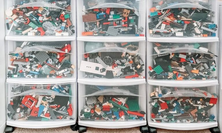 Stay very organized with shelving units that hold labeled bins. Sort Legos by category, like flat plates, regular bricks, or small figures. This system is perfect for large collections with many different pieces. It helps teach kids how to sort and put things away while keeping everything neat and easy to find.