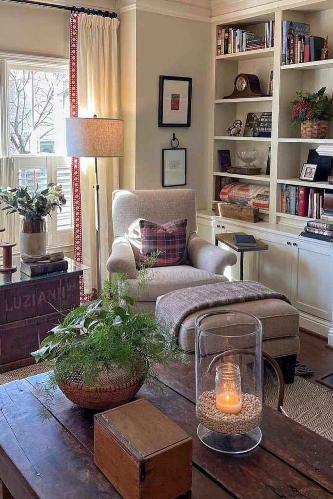 Group your items in sets of three. For example, use a vase, a framed photo, and a stack of books. This looks balanced and interesting.