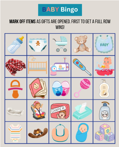 This is a classic game that adds excitement during gift opening. Each guest gets a bingo card with baby items like a bottle or diaper. As the mom-to-be opens presents, guests mark off matching items on their card. The first person to get a full row shouts “Bingo!” and wins a prize.